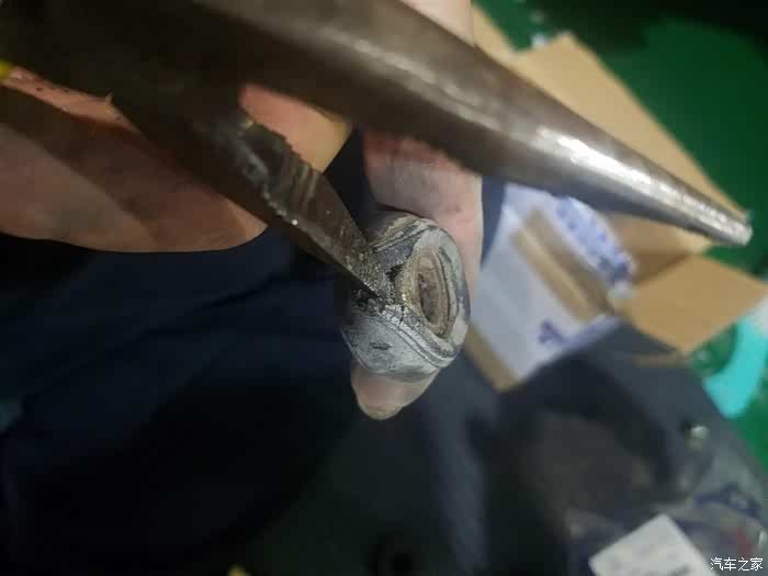 好久没有发帖了,今天曾最近肆虐的新型肺炎传播,不能出门在家做个作业。废话不多说,开始进入主题。大概有半年的时间了,左前轮附近在过不平路面时,会发出咯噔咯噔的声音。但是一直没有时间确认是什么原因。年前要过年回家了,怕跑长途有问题,就开始找找原因是什么。原地打方向,没有听到异响,估计不是减震的问题。过减速带时也没有听到明显的声音。拆了前轮趴在车下面也没看出个什么道理,不过发现平衡杆的胶套好像已经老化严重,想想8年的车了,老化了也正常吧,先换了再说。