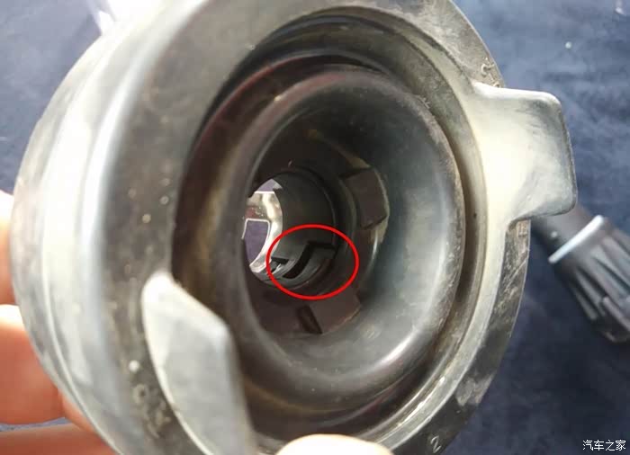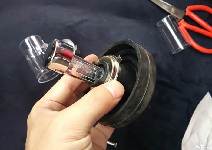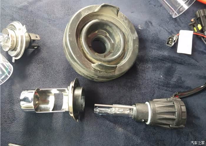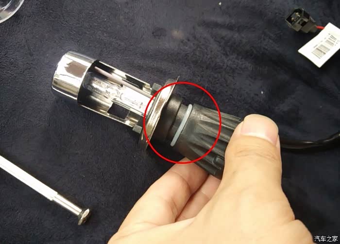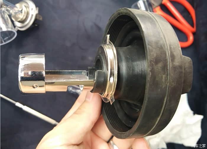目的是先把灯罩装进大灯里卡住,然后套防尘罩,最后拧上氙气灯泡。