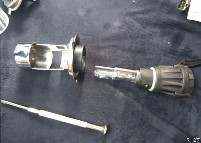 然后就是插氙气灯泡了,小心别碰到玻璃体。