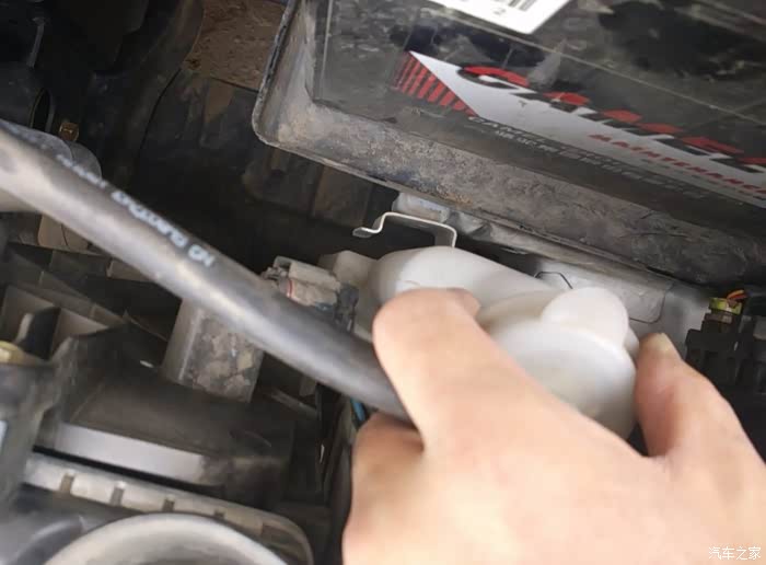 电瓶复位前,发现这个防冻液壶是悬空掉下来的,嗨。。。