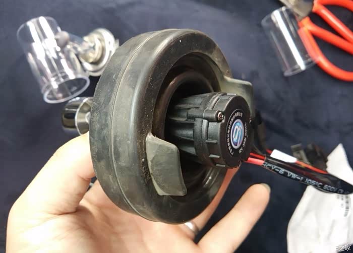 本来我也是准备剪原车防尘罩的,孔小套不进去氙气灯,还好没下手,不然就毁了,呵呵,,,