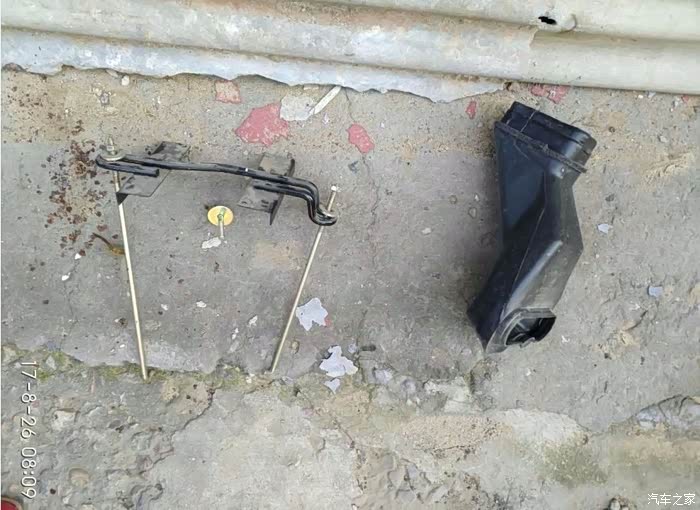 拆下来的电瓶固定杆,还有进气口。