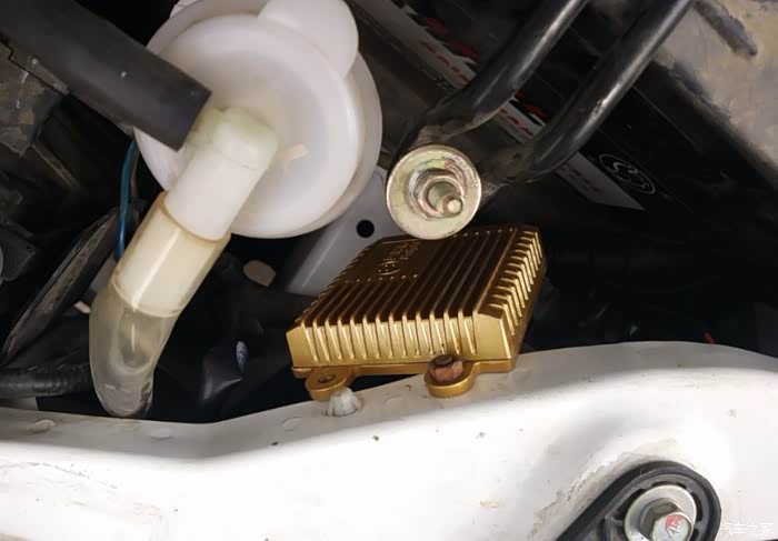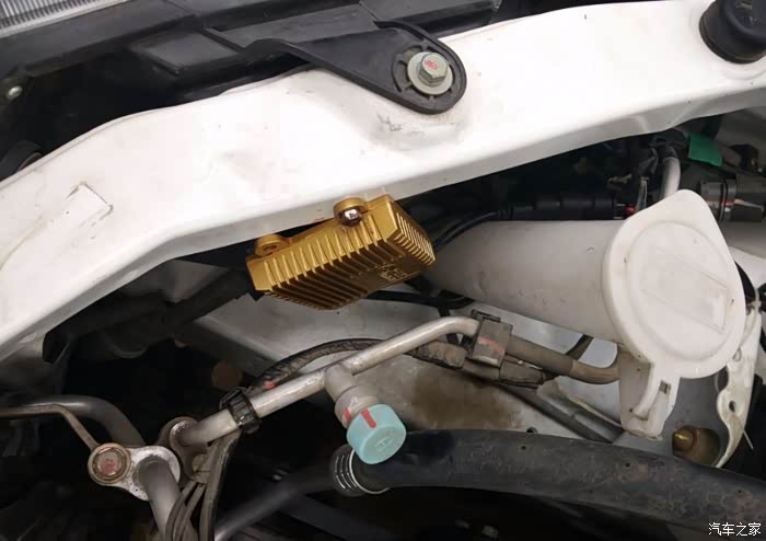 远近光控制器,正好塞在空滤盒后面,绑在一个卡子上了。