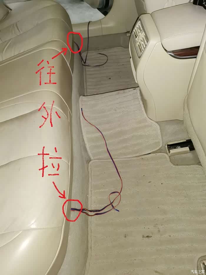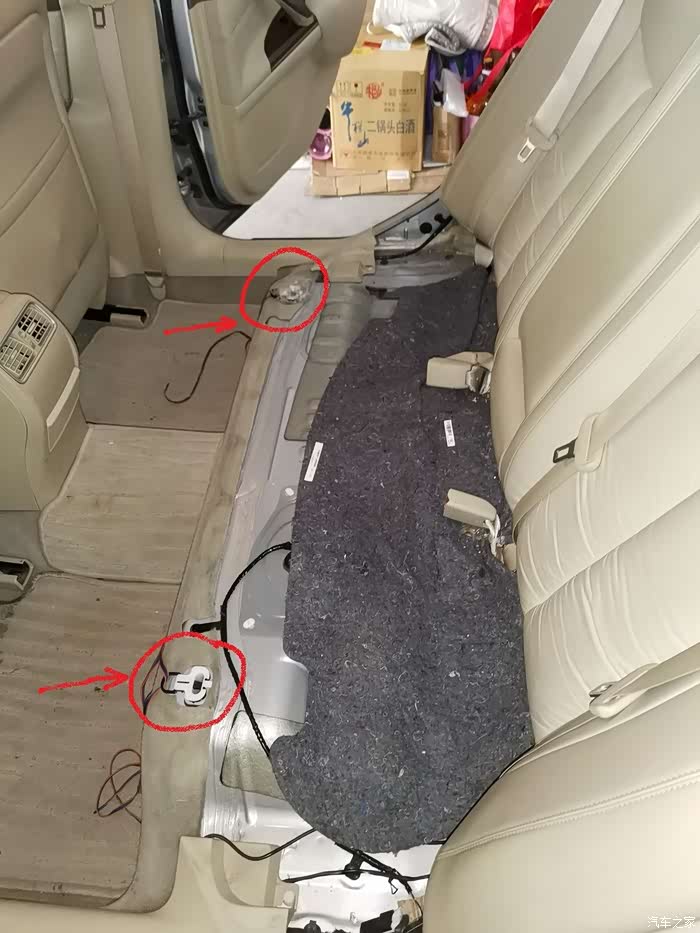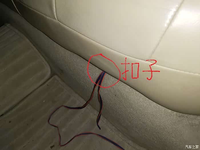 先拆后排坐垫,后排三人座,左右两侧座位的前方各有一个扣子,如图所示