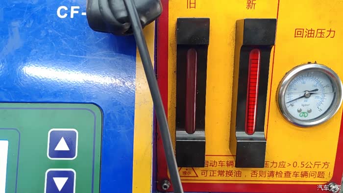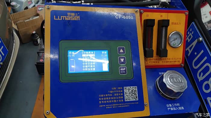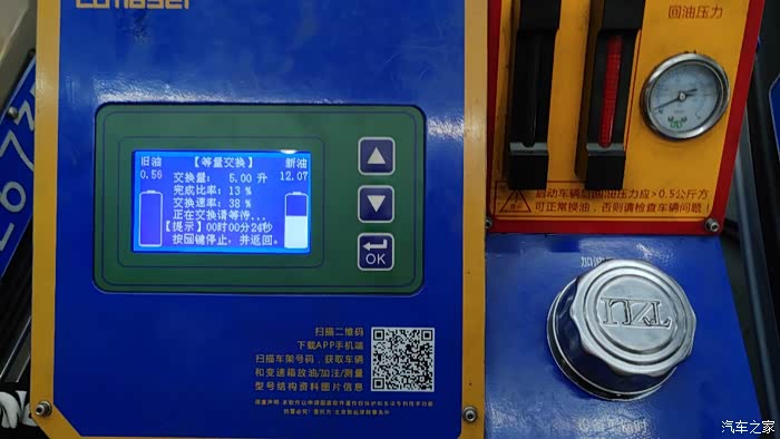 16升新油下去,颜色变淡,可以看清观察器内刻度了。但是我觉得油还是买少了。不过也已经很好了。后来检查油液位置时,溢出管内的油放出来,跟新油颜色接近。