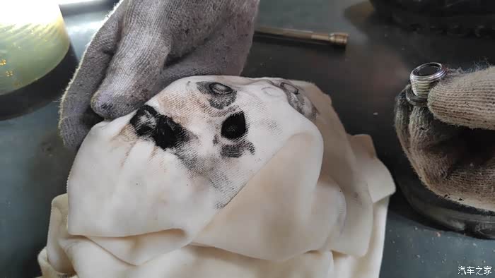 注意左侧新旧油对比。5w公里重力换过一次,但是明显是非常不够的。还是得循环机换。这油比我想象的黑的多