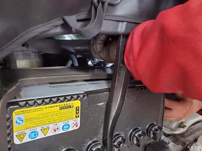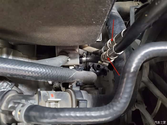 从蓄电池旁边那拆开散热器上一根变速箱油管