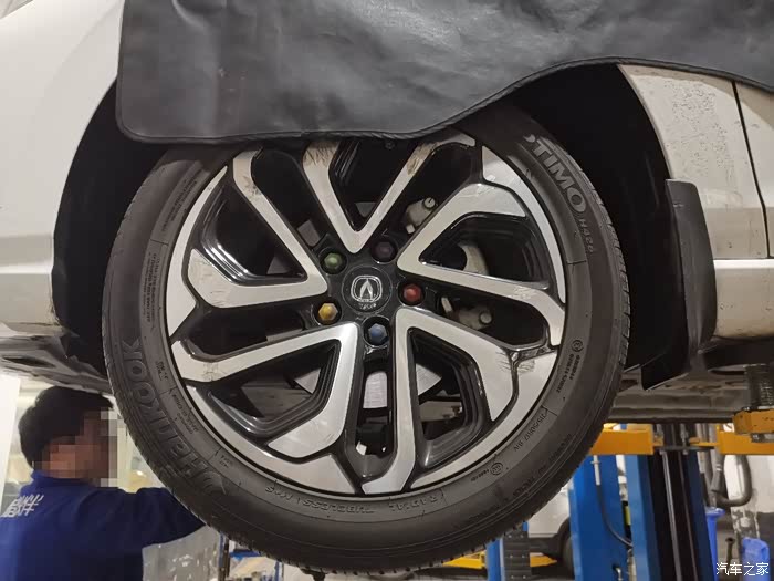 韩泰轮胎,17寸轮毂,轮毂上有刮痕,心疼,在这里还是提醒大家行车注意安全。