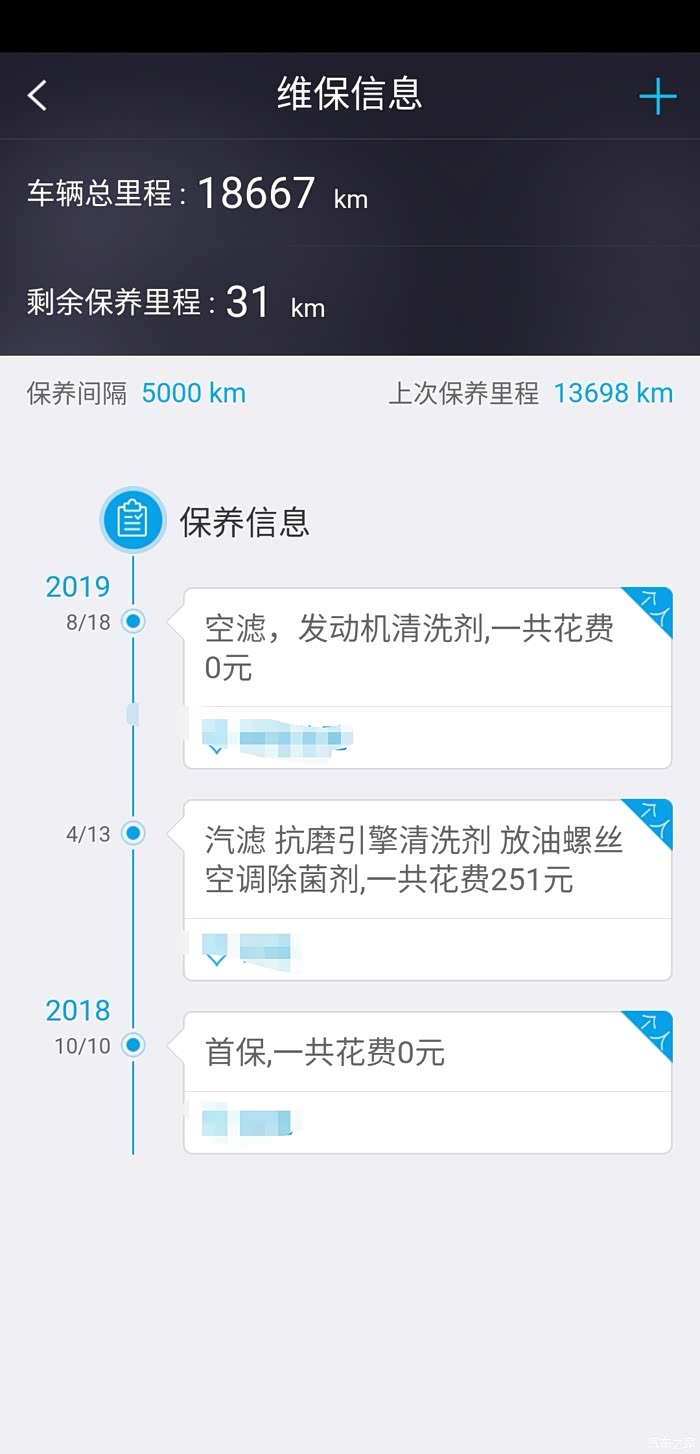 第2次保养换了汽油滤芯,添加了抗磨剂,还有放油螺丝,空调进行了一个除菌,总共花了250多。