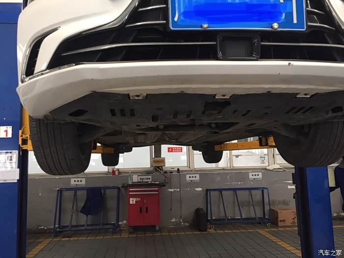 以上项目检测后,表弟的爱车被举升起来。