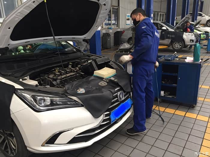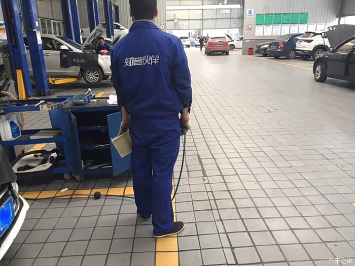 服务技师很快就来把逸动驶入维修工位,准备给它保养了。