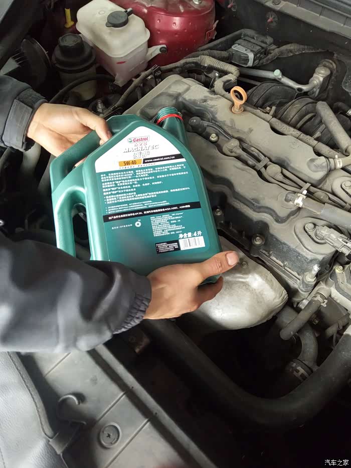 只是在加注机油时一是要小心,二是注意加注量,这是不是4L装的,先装个3L再看情况。