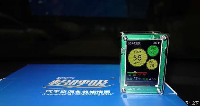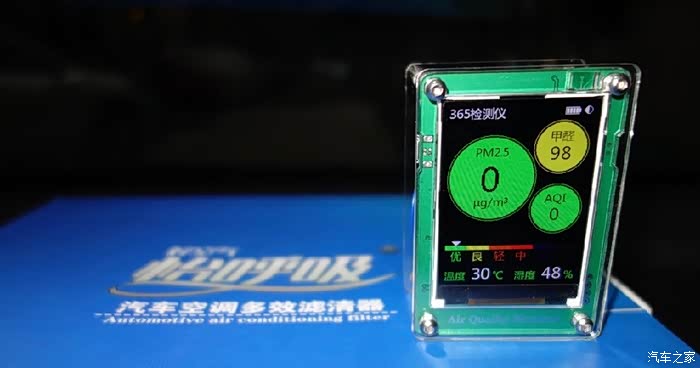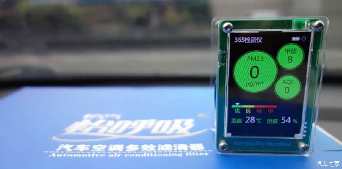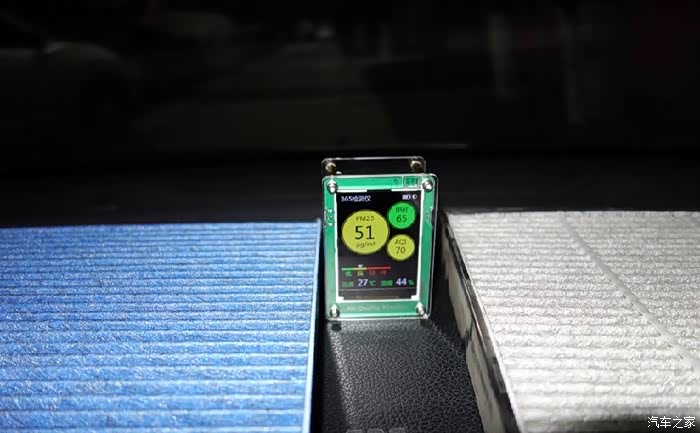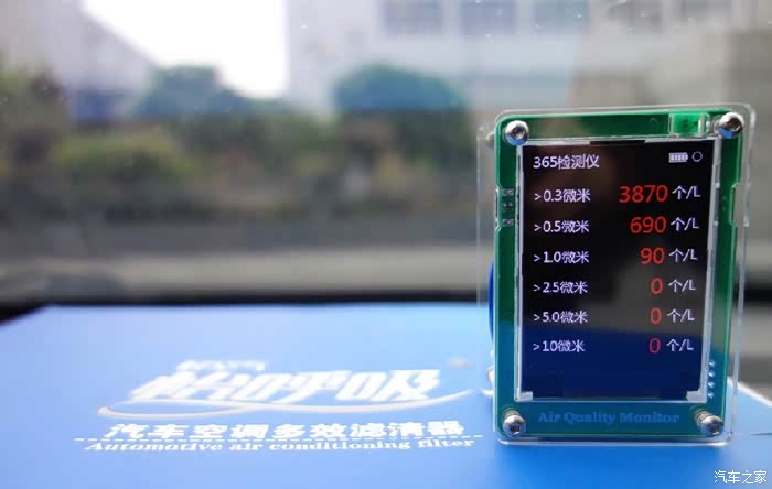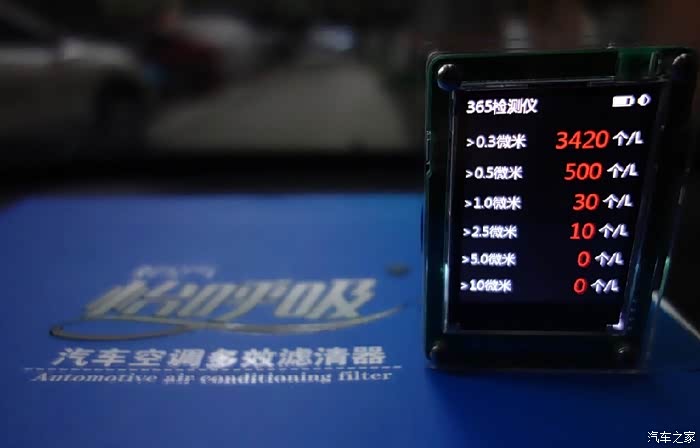 安装好滤清器,关闭车窗,初始测值。雨后空气太给力,看来等到严重污染的时候还应再测试一次。