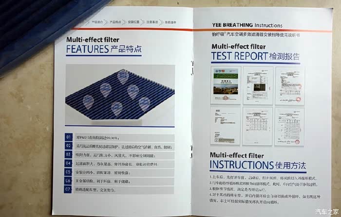 打开包装盒,见到滤清器真容,还有一本说明书。