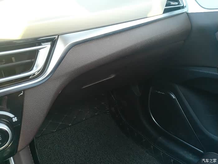 副驾驶的空间还是挺大的,棕色和金属银色,拼接颜色。