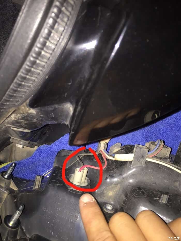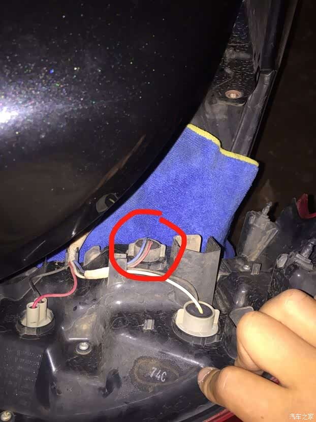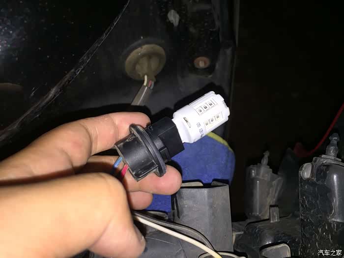 安装完成以后记住检测一下亮不亮,不亮的话一般就是灯泡插反了。 没问题的话就可以往回安装了。 注意往回装的时候这个卡扣要对准。