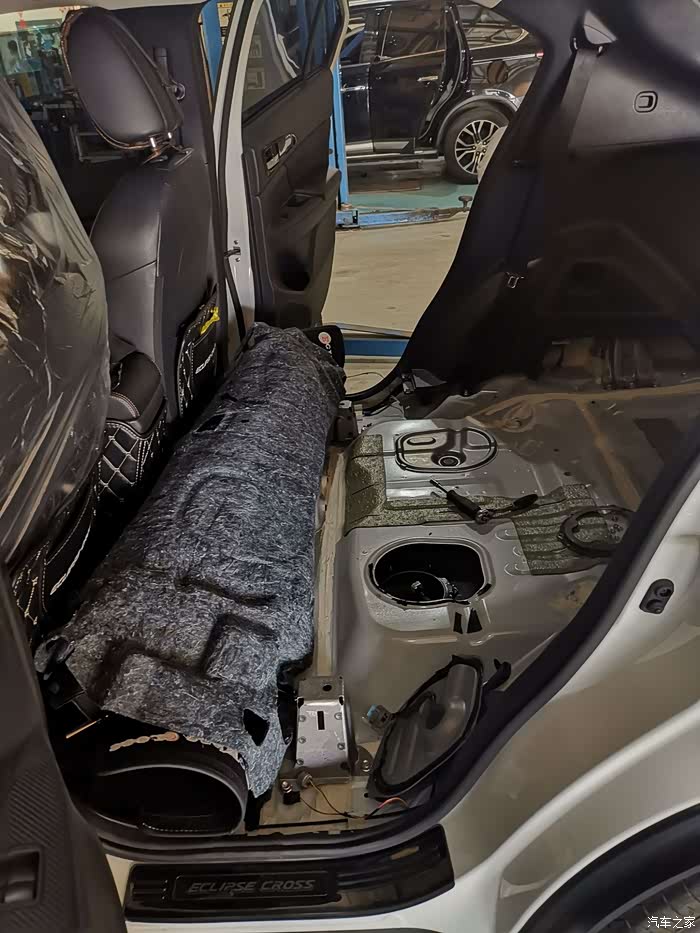 原车密封的很好,小师傅用螺丝刀好一个整才撬开,唉!说实在的看到这么个折腾车法,多多少少还是有些心痛的,三菱啊你可长点心吧!