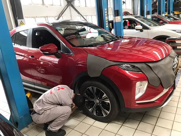 车子升起来之后两个师傅在来来回回的到处查看奕歌的状态,很是专业的样子,4s店就是不一样,比较尽责