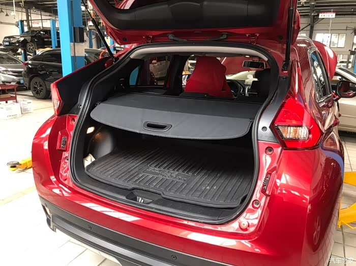 把遮阳布拉起来了这样去看奕歌的后备箱好像又是真的不是很大的样子,不过我觉得不拉起来遮阳布还是可以的