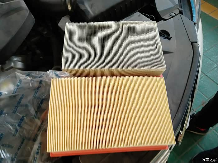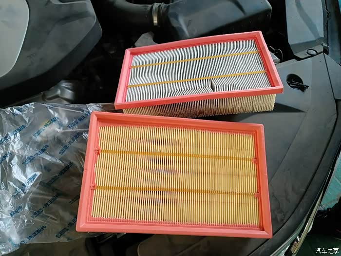 新旧对比一下,旧的空气滤芯也是原厂的,半年了也不是太脏。