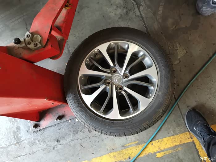 从轮胎内测拍到的,涨紧轮小时,师傅已经新皮带装上了!