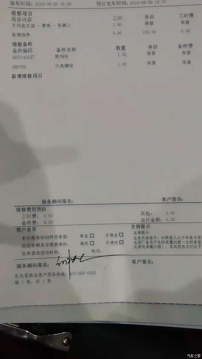 考虑到国庆节要长途旅游,作为老司机的我,每次长途前都有去检查一下车子,这样子比较安全,没想到,这次还真检查出问题了,说我的转向柱松动了,方向会晃,可以免费更换,心里终于踏实了,天天泡在论坛里,了解了挺多,服务也还不错,维修后可以安心的去自驾游了。安全第一!