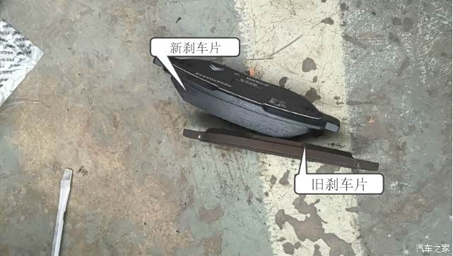 卸下来的旧刹车片和新刹车片的对比。