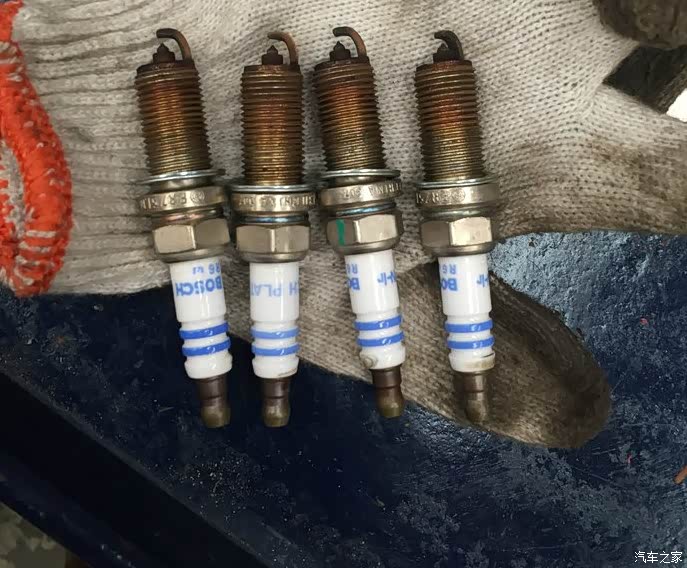 这是拆下来的火花塞,黑乎乎的,都是积碳,看来是真的要换了。