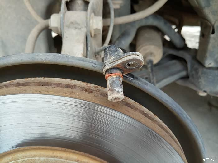 这个就是原车的ABS传感器,有点脏了,要清洗的话,就是把它擦干净再装回去,用湿毛巾擦就可以了。为什么会脏呢?再往下看。