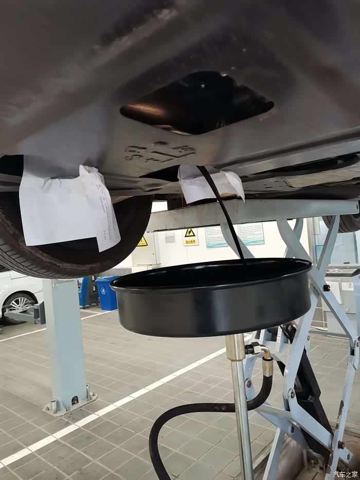 车内的机油很快就放完了。然后就是把车子放下来加新的机油,加的是0W20的机油。底盘螺栓也做了紧固。