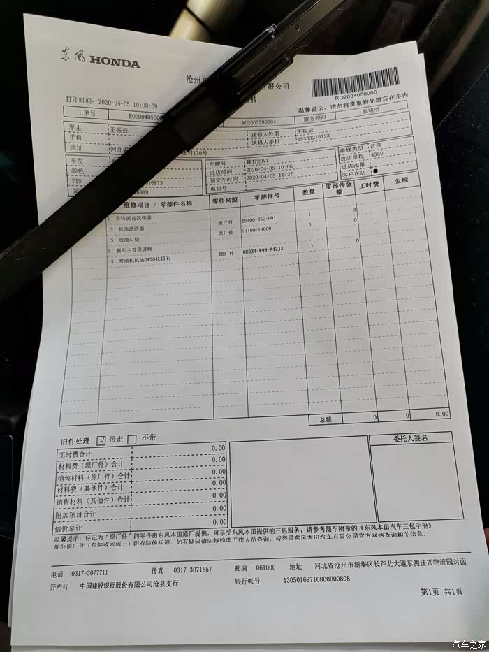 首次保养是免费的,一个子儿都没花,不光免费保养,还送了张免费的洗车券,感觉不错的哈~