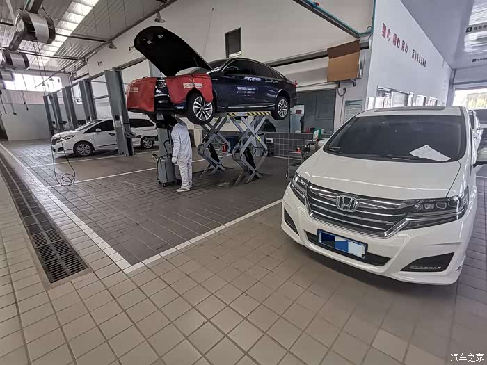保养流程正式启动,技师人很NICE,一边检查一边给我解释,顺便讲了些用车当中要注意的一些事项。简而言之就是对待车子要尽量温柔点,急油急刹对于车子的磨损和油耗都比温柔开车要剧烈得多,惭愧惭愧,我这种暴躁式驾驶员真的要反省一下了!长期养成的不良驾驶习惯一下子可能难以改过来,尽量慢慢让自己佛系一点吧!