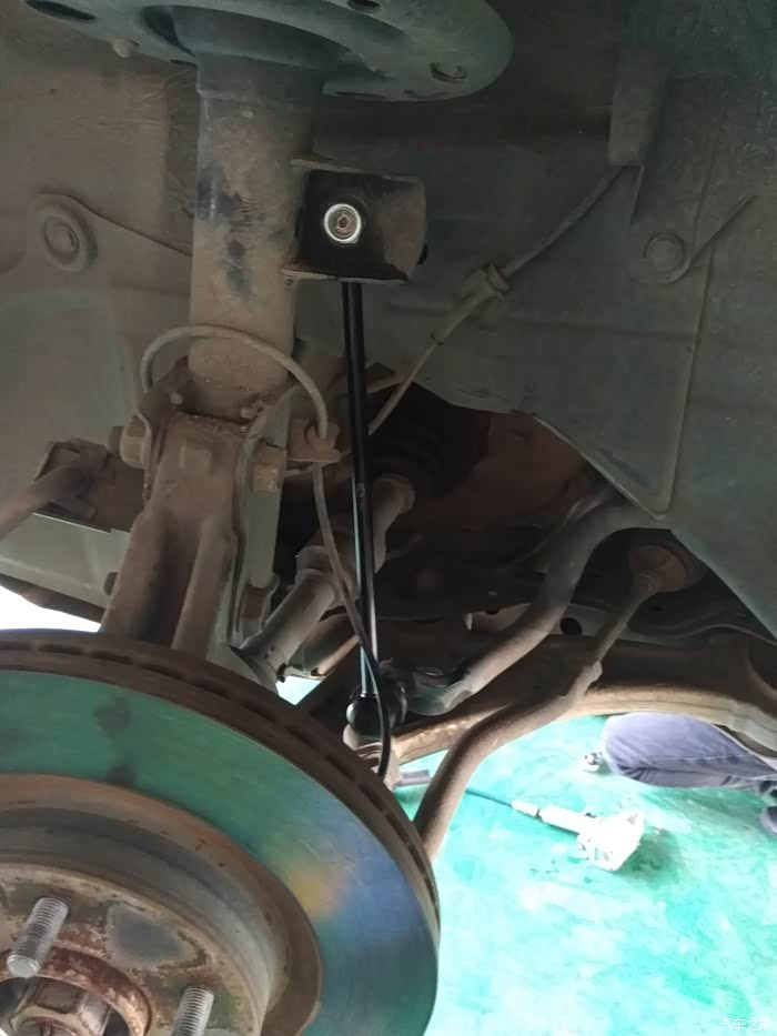 清明回来发现车子开车有点不对劲,过颠簸路或者小区停车位的时候,感觉车子不对劲:主要是砰砰响,很闷的那种相声,感觉方位就在右前轮。然后下班路过某虎直营店,就去检查了下,带维修主管试车说右侧避震有问题/或者是顶胶坏了,最后检查是前两个平衡立杆坏了,右转向机拉杆及球头坏了。