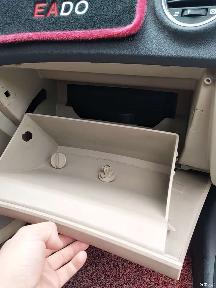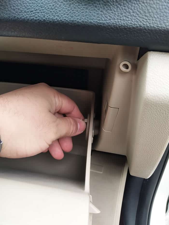 打开副驾驶的储物格会看到两边有两个卡扣