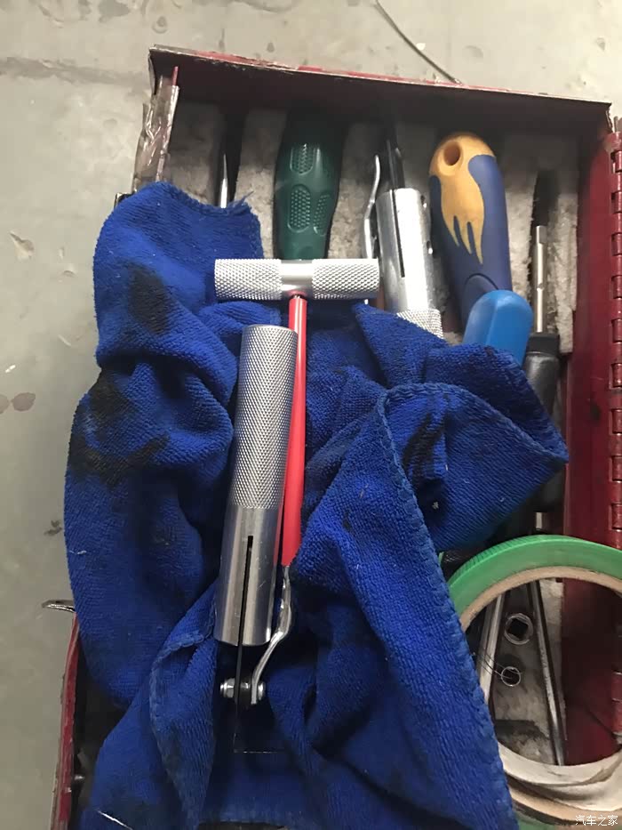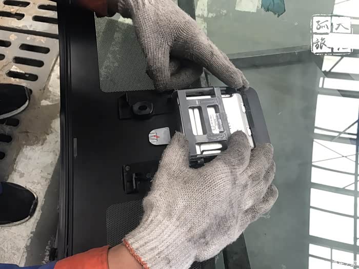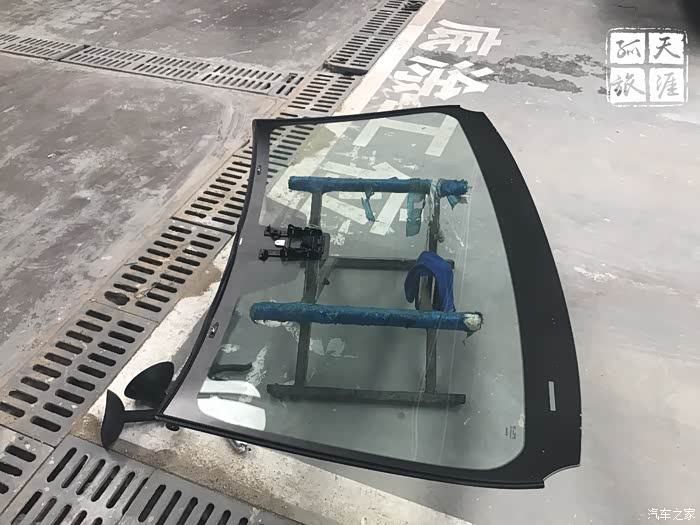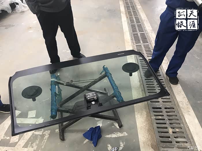 然后是切割前挡风玻璃的固定胶,使用了专用工具。