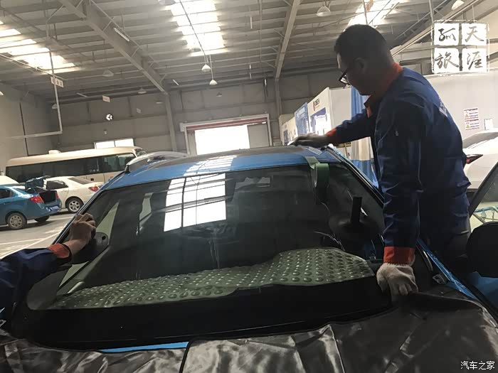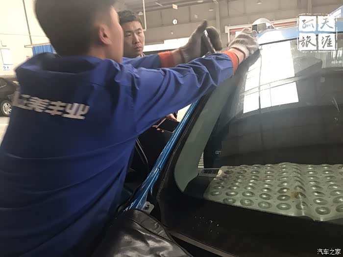 由于提前定了全新风挡,到店之后报保险,拍照,等更换玻璃的技术人员到,然后直接开始更换,这过程还算快,只是赶上中午吃饭时间,稍微多等了一会。