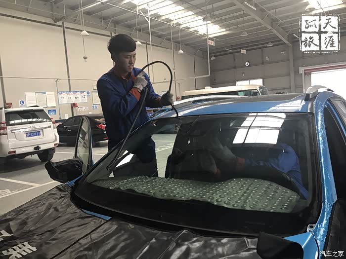 最后调整一下固定胶带,前风挡更换完毕。
