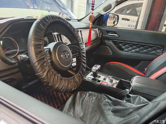到了店里美女接待把长城炮方向盘和驾驶位座椅套上皮革套子,以免弄脏长城炮内饰