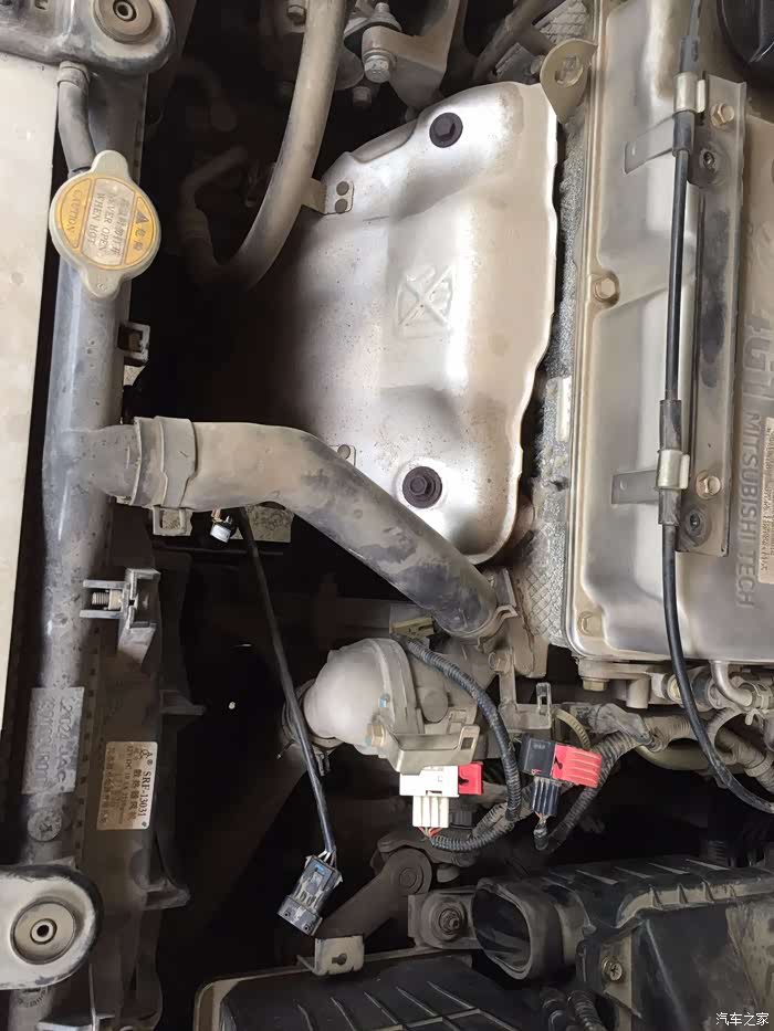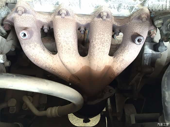 前氧传感器清晰可见,图中最亮处,用电筒照的。