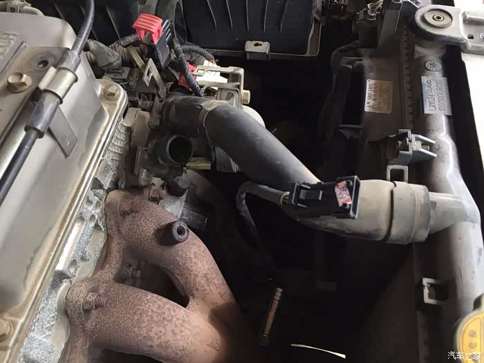 发动机和水箱之间的冷却液胶管,有点碍事,也拆了一端,漏了一地的冷却液。