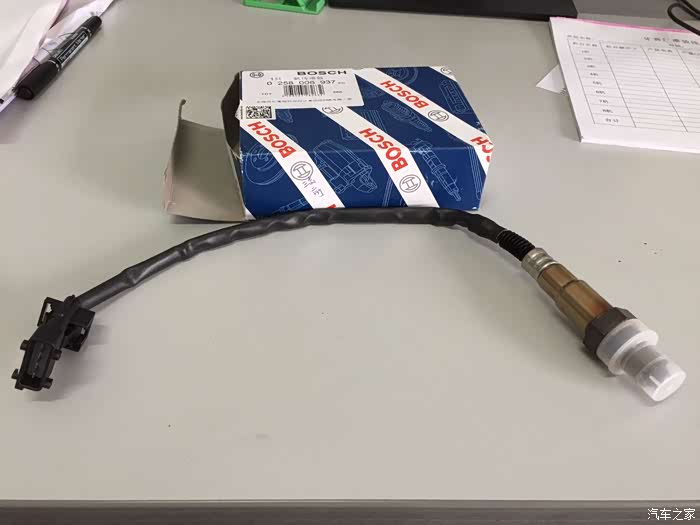 新旧前氧传感器。旧的被剪断了,方便拆。