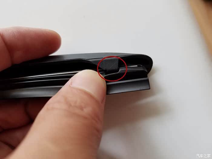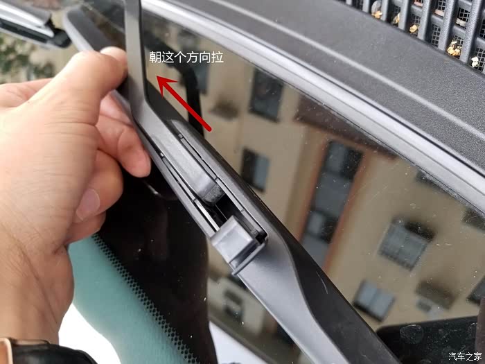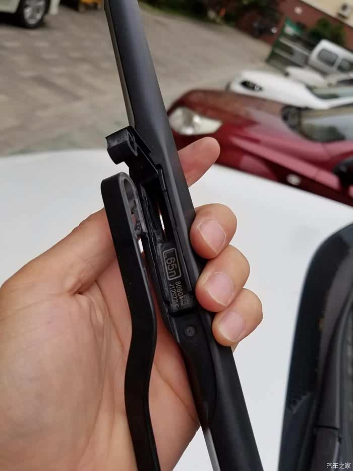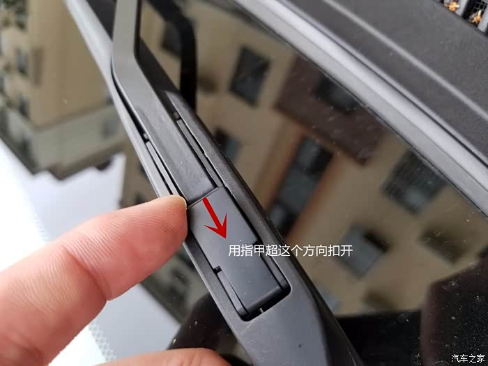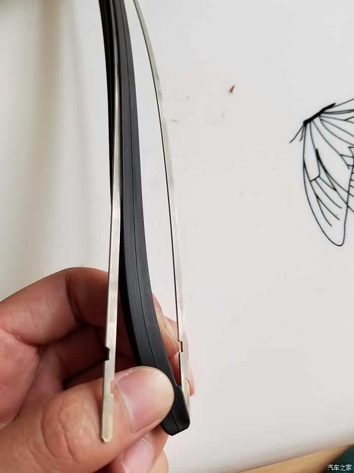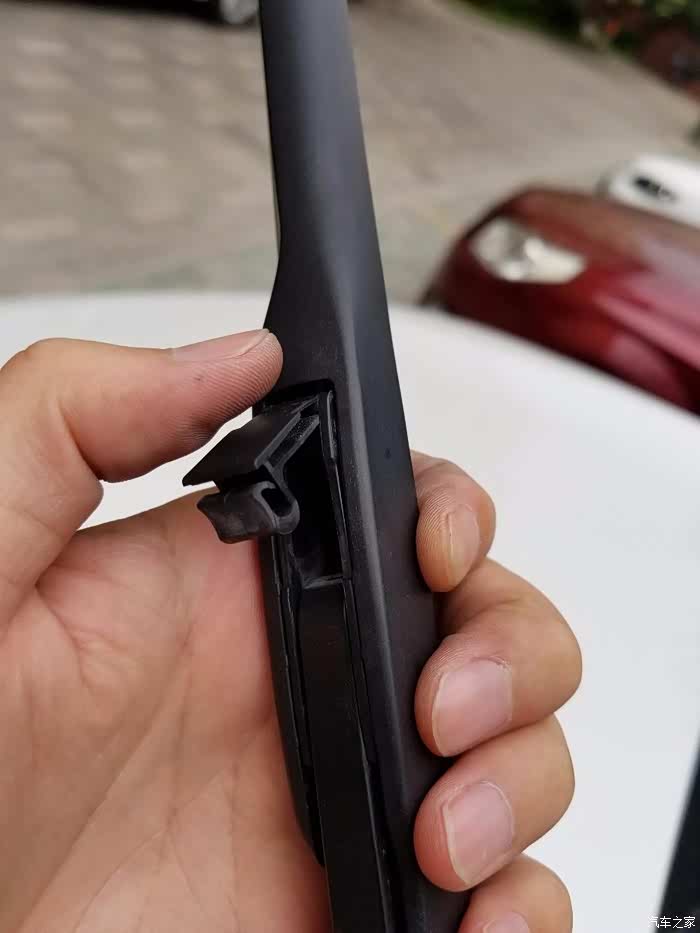 顺着雨刮的的卡槽往里塞,很轻松就塞进去了