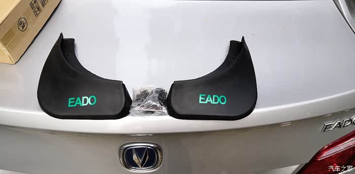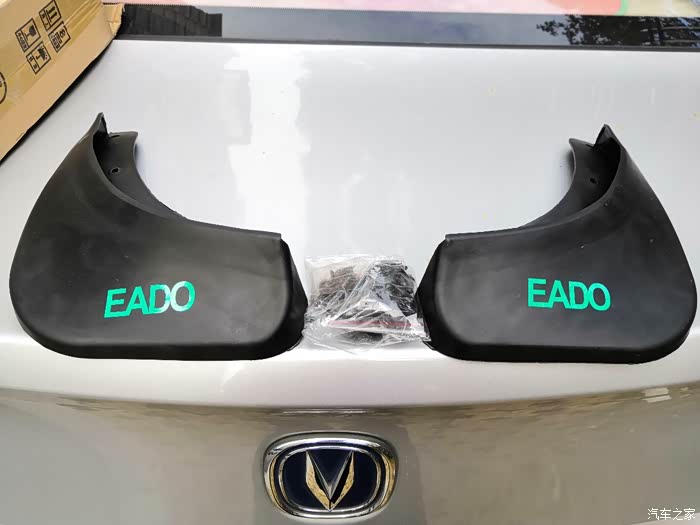 这是我们新买的挡泥板,带有醒目的车标反射标记