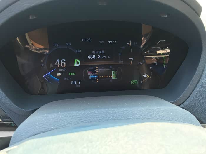 啥情况,剩余电量50%的时候,纯电里程已经达到56公里了,难道要突破100吗,逆天的节奏啊!