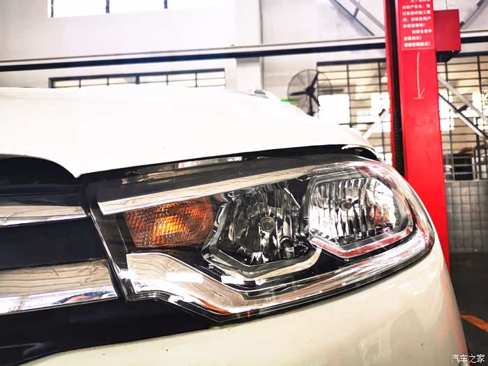 发动机舱检查的是全车的液面,接着另一个小师傅开始检查灯光,看看是否都亮。