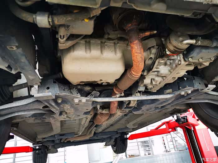 C3的底盘原来长这样啊,这个排气管也太锈了吧,可师傅说,这是正常的,因为高温的作用下,就是这个样子,不防事不防事。