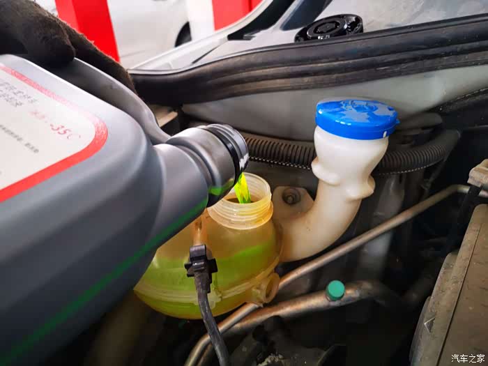 检查中发现,防冻液有缺失,二话没说给免费添加,当然,如果缺的多,超过一壶的话,那就得自费啦。专业的4S店服务就是好,缺的不多的情况下,一般都会给免费补满。