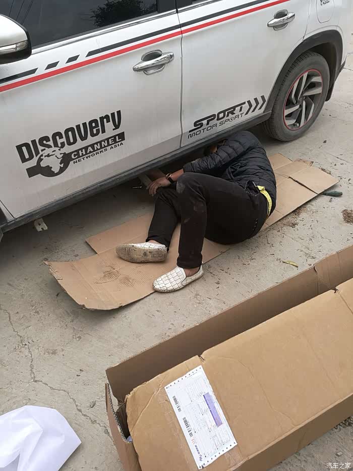 我要拍照,让俺朋友去车底拆支架的另一端了~~~哈哈~我拍照技术比他好~真的~
