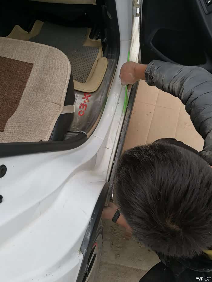 然后用螺母固定,这里小心点,不要把螺丝推到车里面去,会很麻烦的~