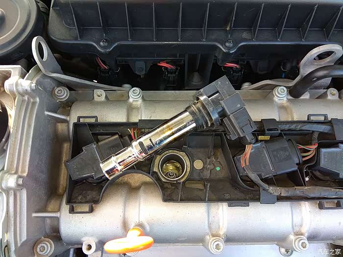 2缸点火线圈拿出来的样子,也可以带着线束拿出来,导线够长。